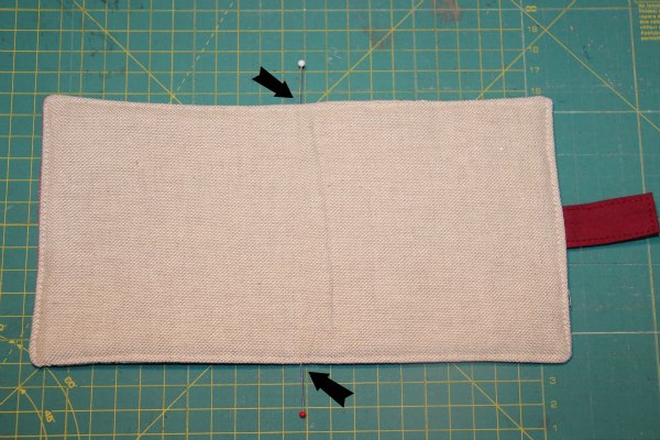 Y colocamos los dos trozos de fieltro. Marcamos una linea uniendo las dos alfileres (con un rotulador o lápiz que se pueda borrar) .