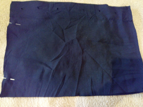 Una vez que están unidos vamos a pegarle el circulo por el lado que tiene los piquetes, deben coincidir dos piquetes con las costuras laterales del rectángulo y dos piquetes con la mitad del rectángulo.