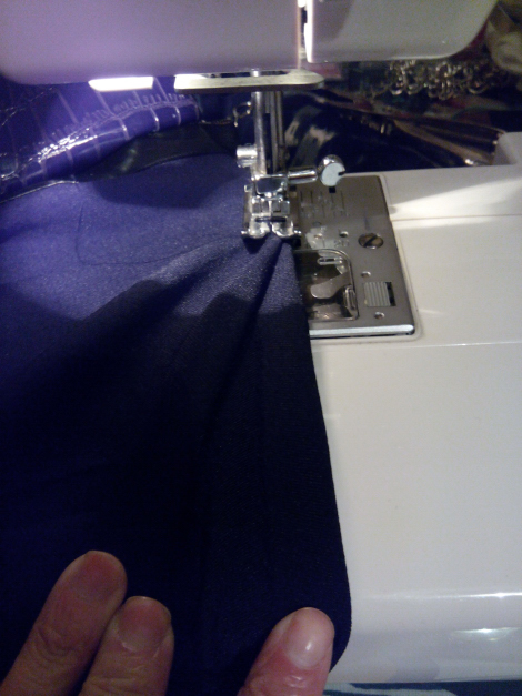 Ponemos el tejido dentro del forro las dos caras buenas enfrentadas y cosemos al ancho de pata,