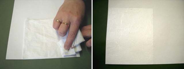 Un vez impresos, despegaremos poco a poco el papel de arroz del folio.