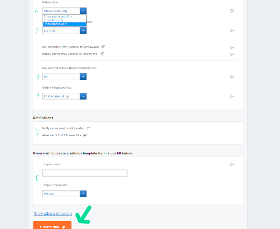 7. Número de caracteres que permitiremos cuando los visitantes ingresen su link de la entrada. (Yo lo dejo sin límites "No limit"