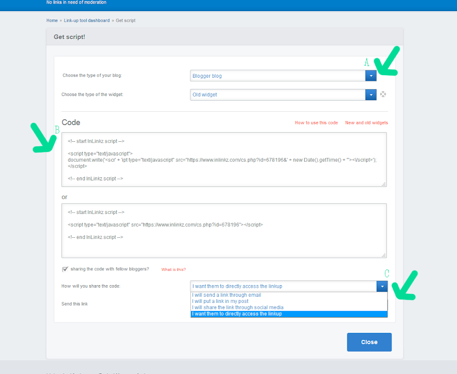 Los otros bloggers sólo tendrán acceso a esta página, para que puedan elegir el código adecuado para sus propios blogs.