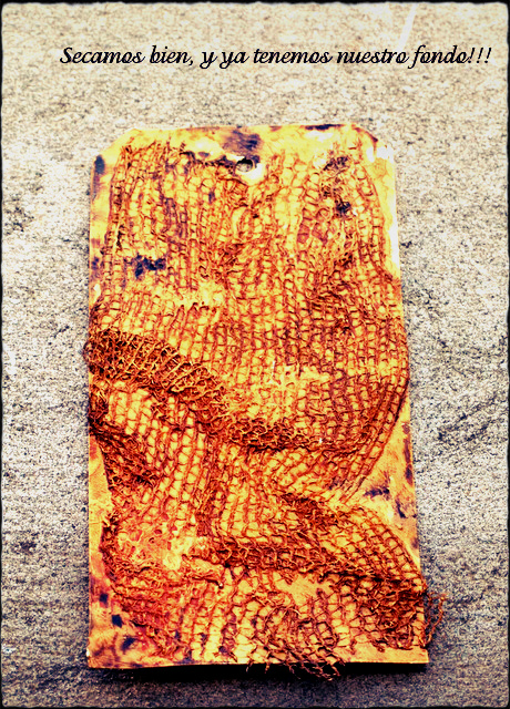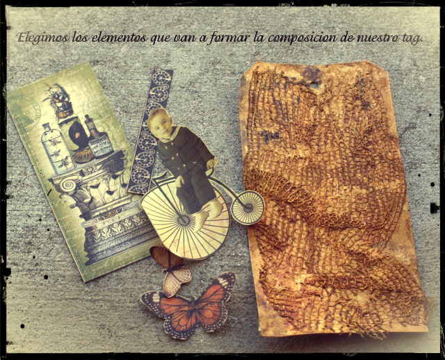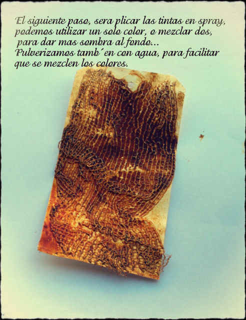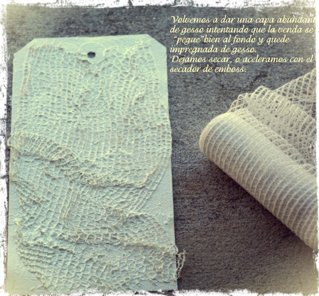 Se trata de hacer un fondo estilo Art Journal, con gesso, tintas en spray y para darle textura, vendas... y una composición de diferentes elementos, en mi caso muy vintage y primaverales, que vosotras podéis adaptar a vuestros gustos y estilo personales...