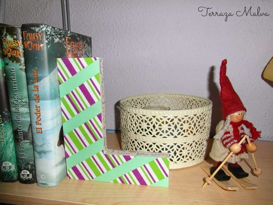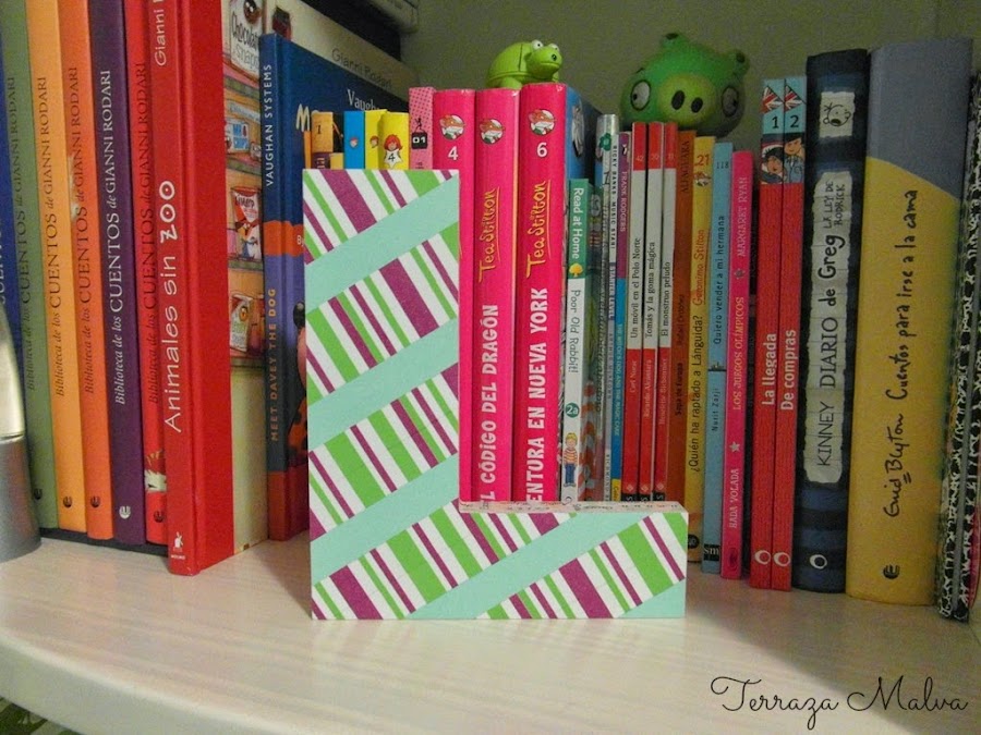 Y ya está la letra completamente decorada. Puede utilizarse simplemente como elemento decorativo o como sujetalibros (como en la primera imagen del post).
