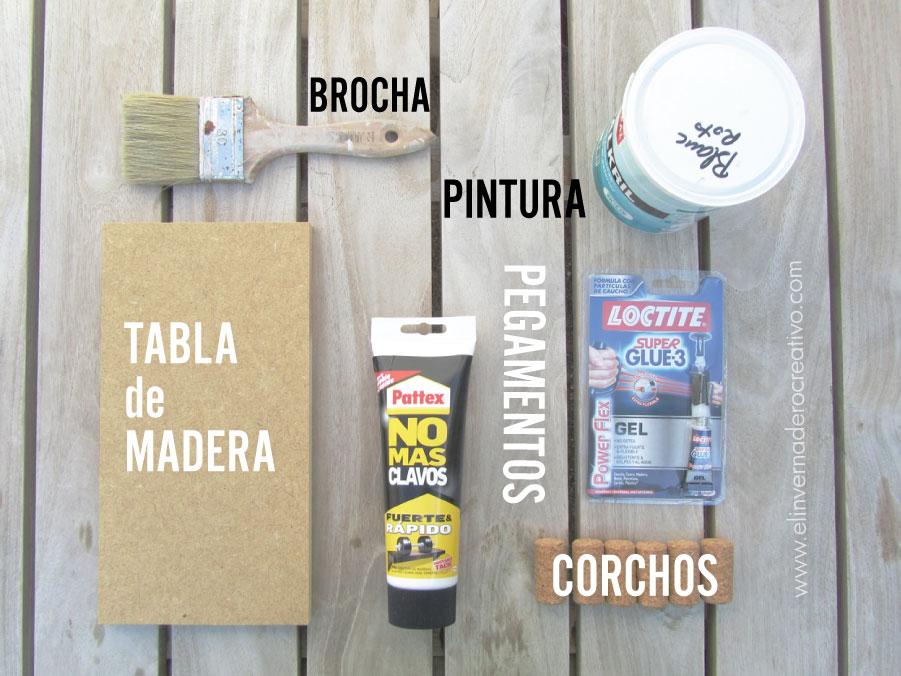 Antes de empezar a trabajar con los corchos, toma la tabla de madera y píntala con el color que hayas elegido, tendrás que esperar un poco a que se seque y así puedes ir preparando el siguiente paso.
