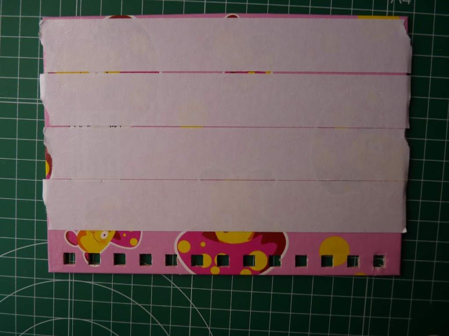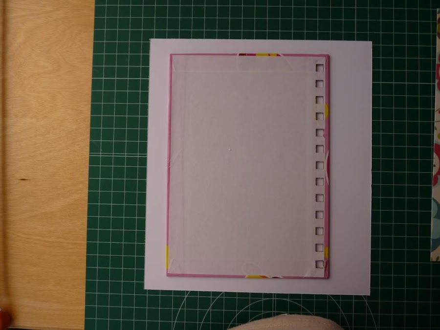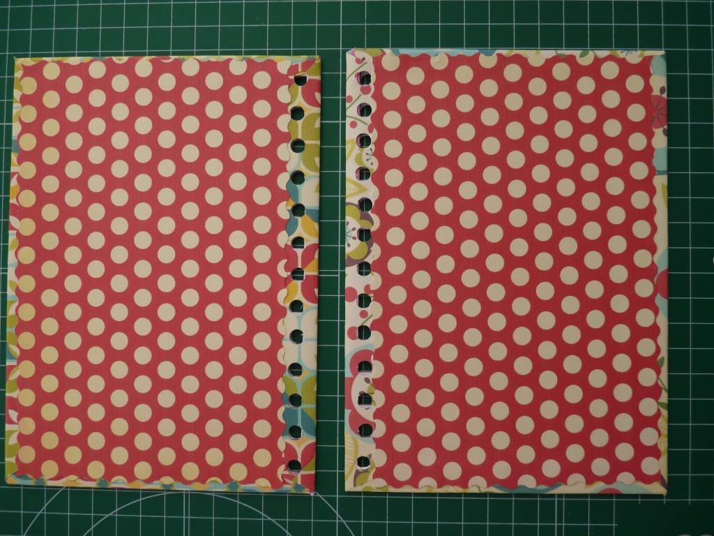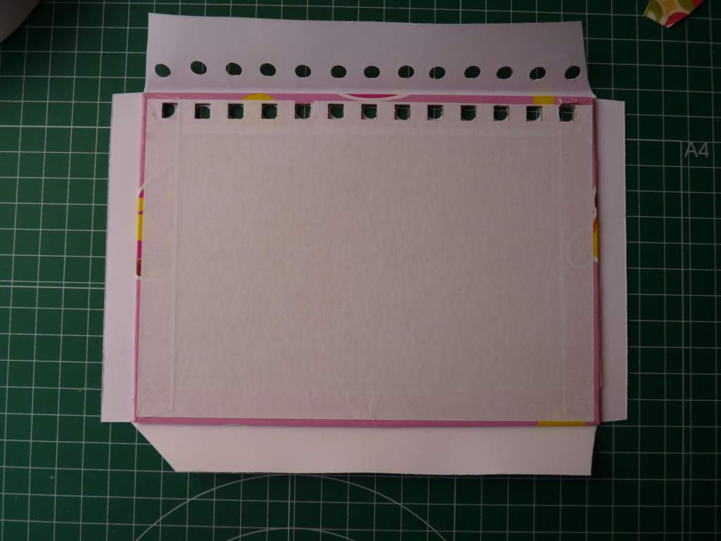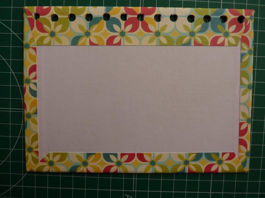 Podéis ver cómo hay que dejar más margen en el lado de los agujeros de las anillas, ya que el papel debe cubrir todo.