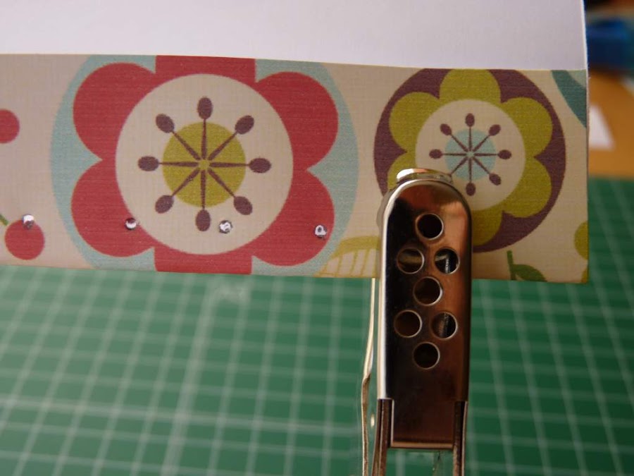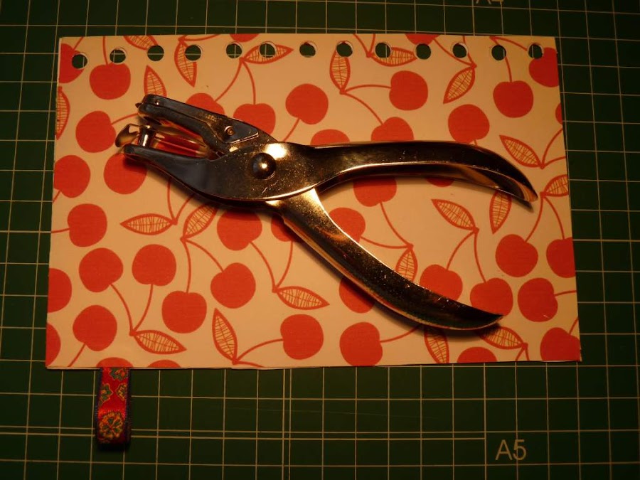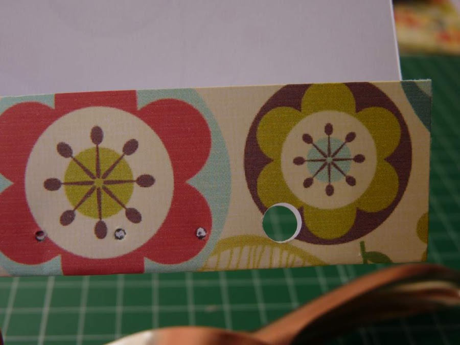 Hay que hacerlos en los dos lados del papel a la vez, para que luego casen bien con la tapa y las anillas. Este paso es mucho más sencillo si tenemos Crop a Dile. En ese caso, pegaremos el papel como se indica más adelante, marcaremos los agujeros y los hacemos con esta herramienta.