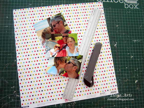 Bueno, vamos a empezar :)He escogido tres fotos muy coloridas de tamaño 7,5 x10 cm ( la mitad de una foto estándar de 10x15cm) y un papel de unos preciosos lunares.