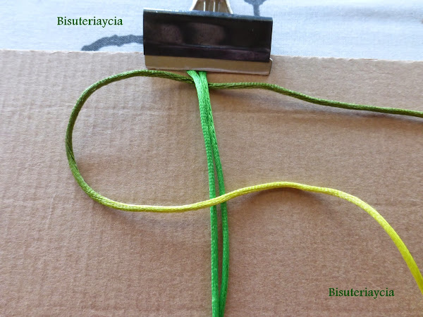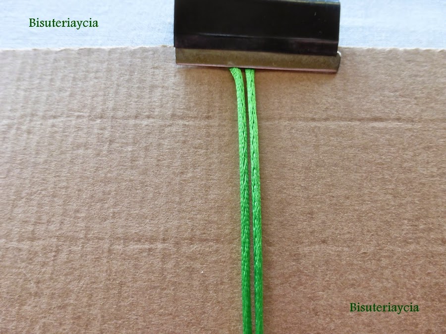 Para empezar ataremos dos hilos a una superficie que nos permita trabajar con libertad.