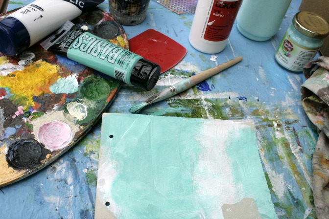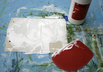 Comienzo dando una capa de gesso a mi papel, sin ninguna uniformidad, es más, en algunas partes le dejo sin gesso.