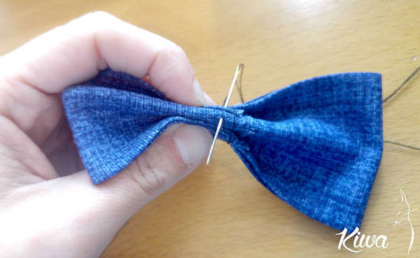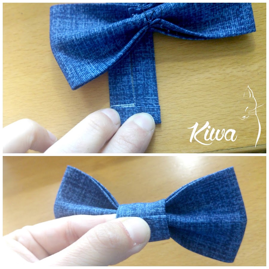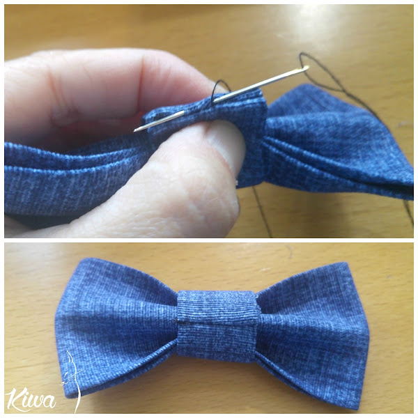 Dobla los dos extremos para un acabado pulido, y los solapas en el centro. La pajarita debe quedar ajustada pero no en exceso, para que puedas luego introducir el biés.
