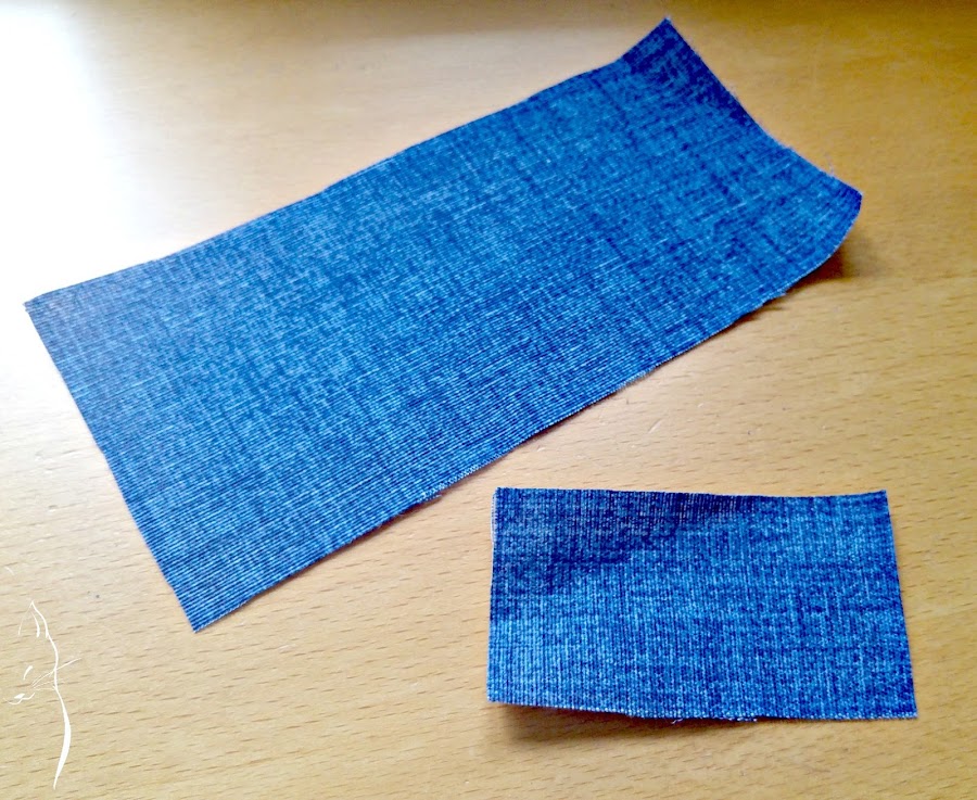 un snap o botón de presión Corta dos piezas de la tela elegida, un rectángulo de 22 x10 cm y otro de 9 x 5 cm.