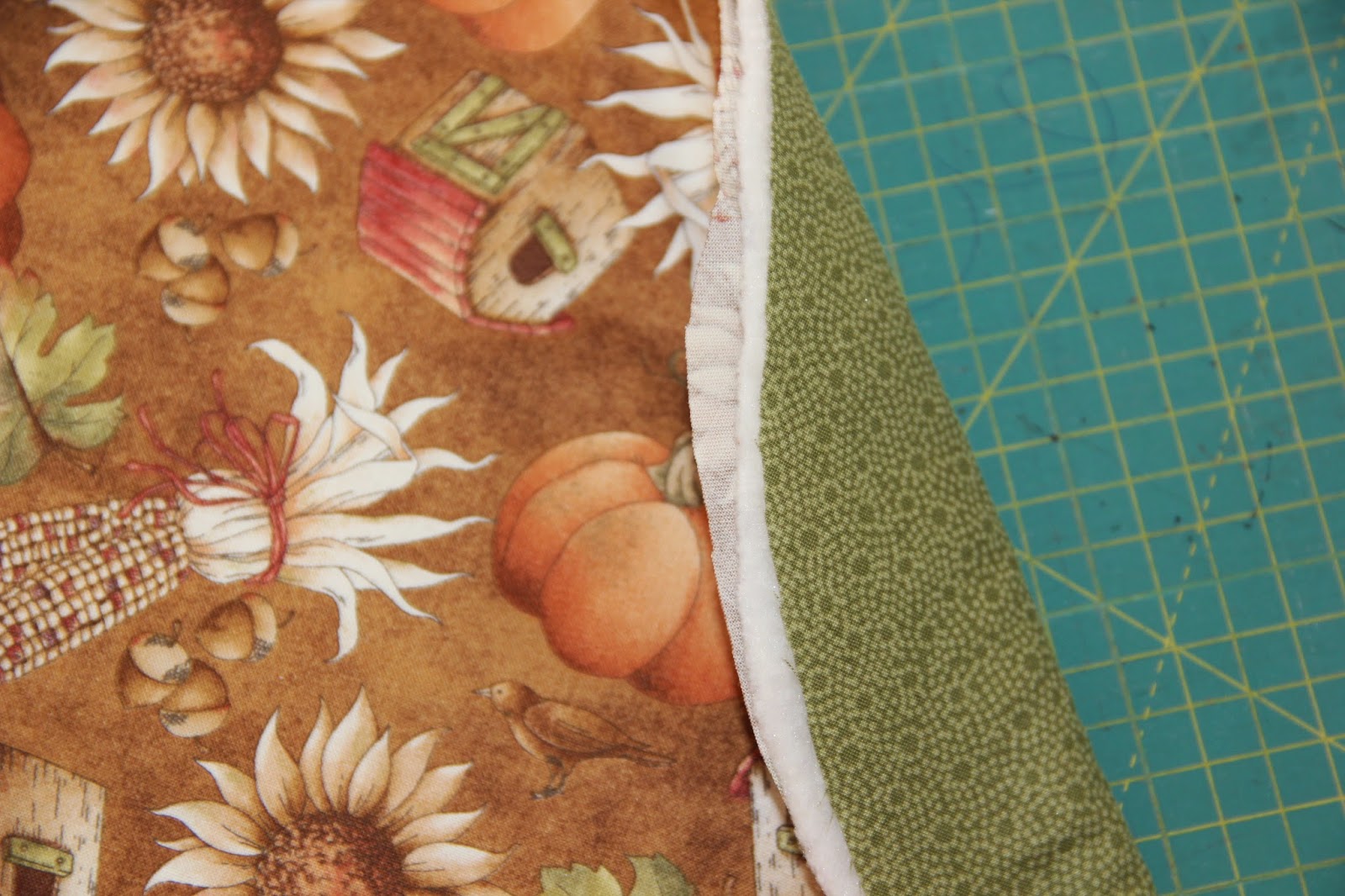 Colocamos la guata entre las dos telas. Los derechos de las telas tienen que quedar hacia afuera