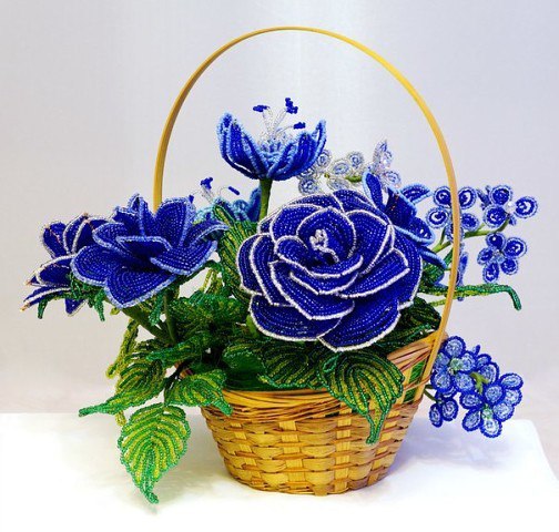 Arreglo de rosas de chaquira en azul
