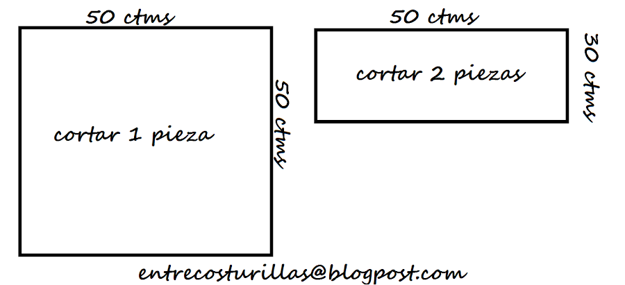 Empezamos cortando un cuadrado de 50x50 y dos rectángulo de 30x50, tal y como se ve en el dibujo y fotos: