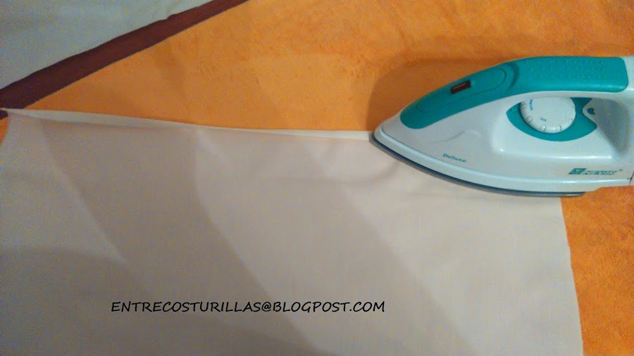 1.- A las piezas traseras le vamos a coser un pequeño dobladillo que marcaremos con la plancha y posteriormente coseremos. Como se puede apreciar en la siguientes fotos.