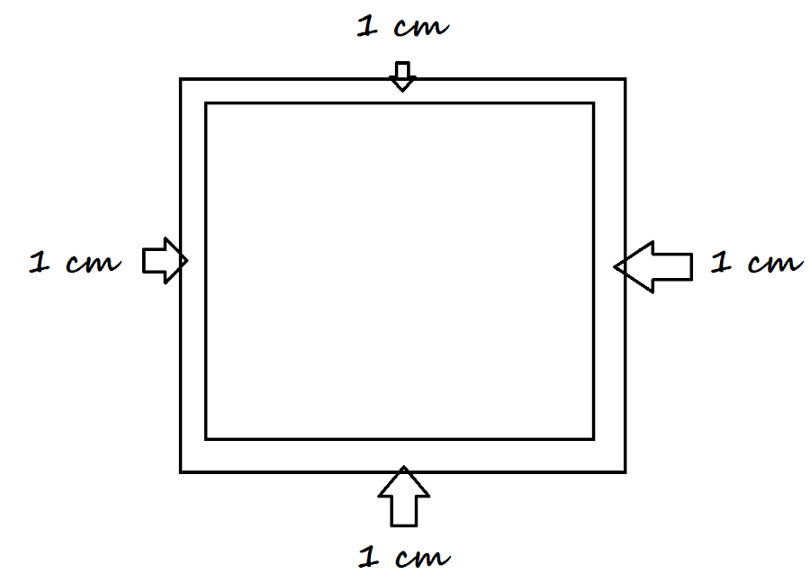 3.- A continuación, cosemos a máquina bordeando el cojín y dejando 1 cm de costura, como se aprecia en el siguiente dibujo.