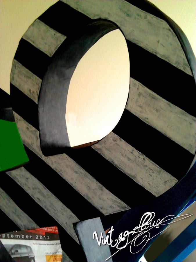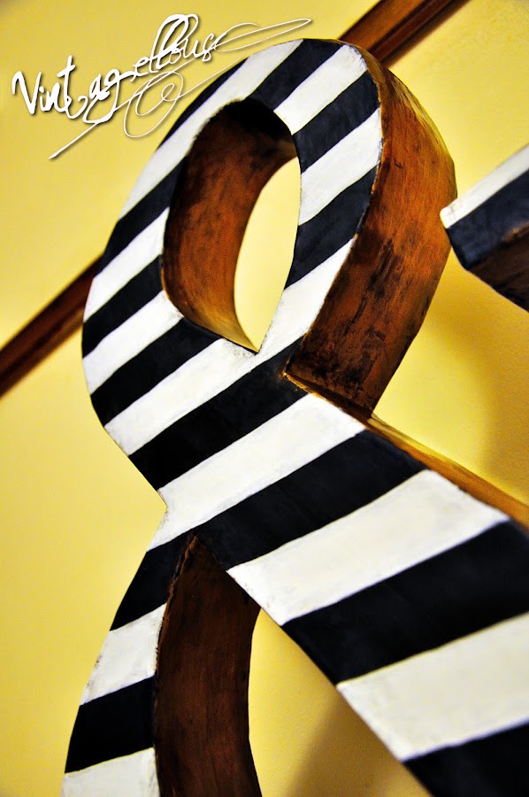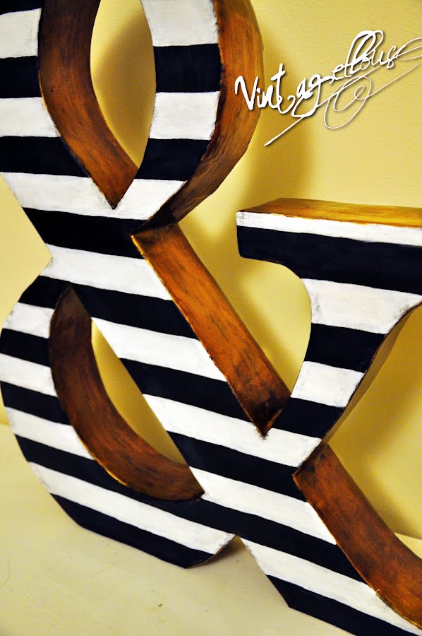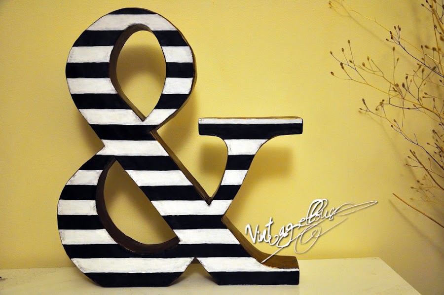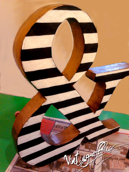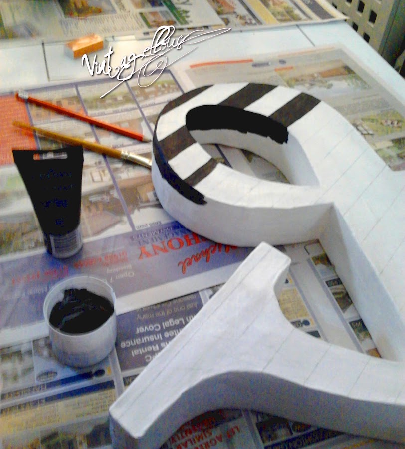...Hecho todo esto pasamos a pintar, en este modelo como veis nos decidimos por rayas blancas y negras, y los laterales en dorado envejecido. Lo primero fue pintar de blanco, después dibujamos las rayas con un lápiz y pintamos de negro las rayas y los laterales de la letra.