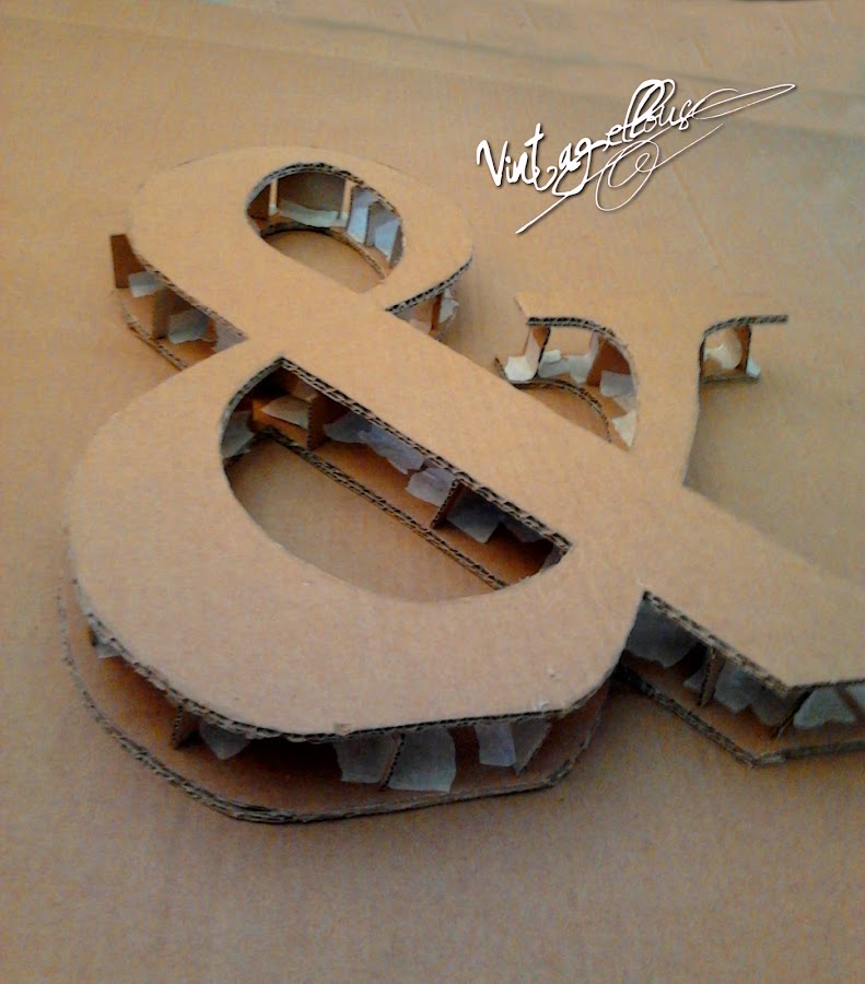 Lo primero es elegir el tamaño y tipografía que queremos, hacemos una plantilla con la letra elegida, podemos imprimirlas, fotocopiar o dibujarlas a mano. La trasladamos a cartón, tenemos que cortar dos letras exactamente iguales. Cortamos con un cúter. El siguiente paso es dar a la letra la altura deseada, cortamos unas tiras de cartón que sean de la misma altura todas, así formaremos un armazón muy resistente. Las unimos con celofán o cinta de carrocero.