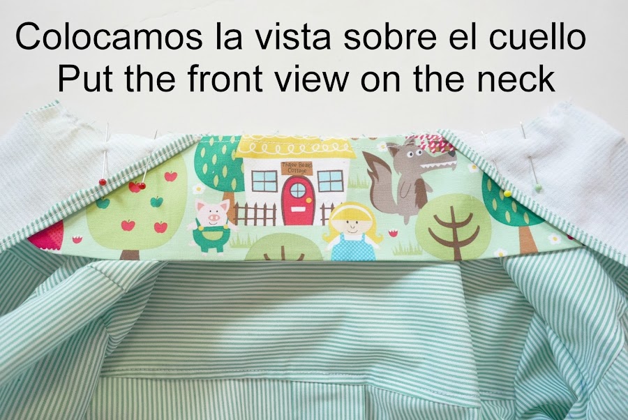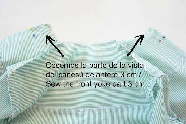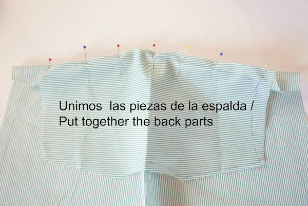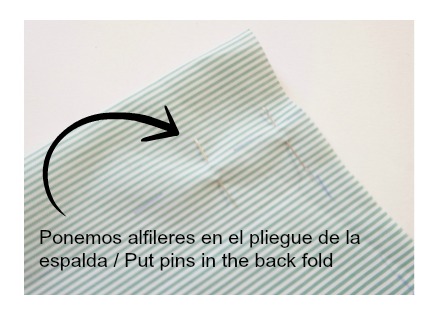 Después uniremos con alfileres la espalda con el canesú trasero