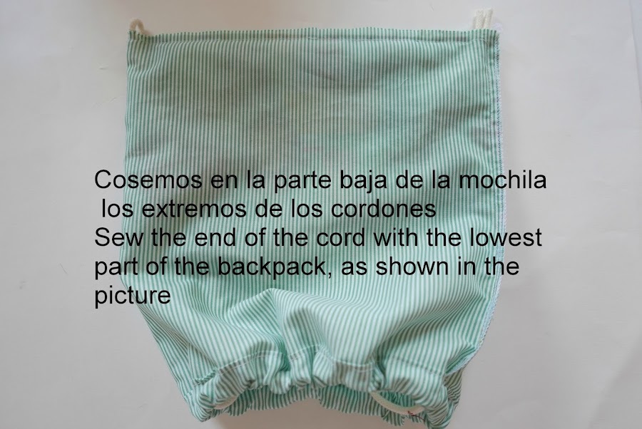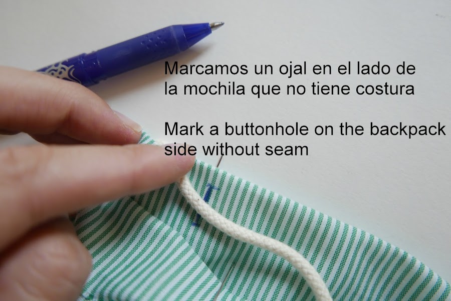 Haremos un ojal en la parte de la mochila que no está abierta