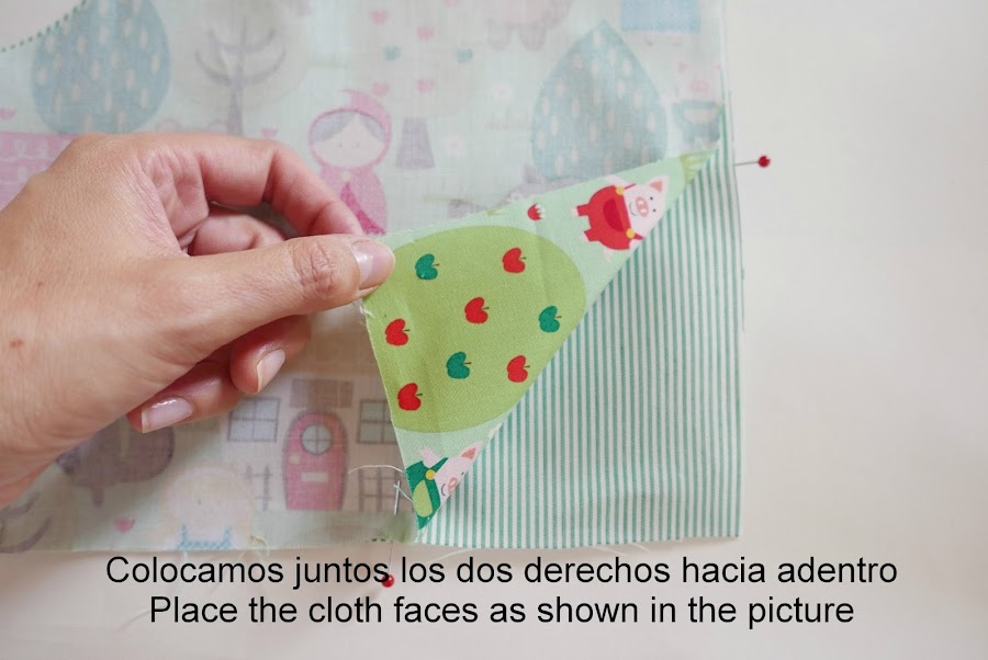 Colocamos el bies con alfileres.