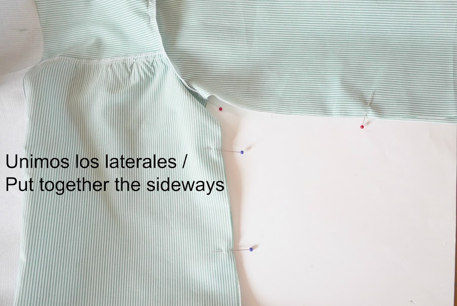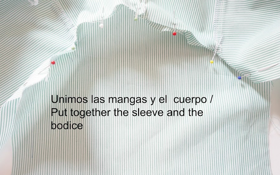 Uniremos el cuerpo con las mangas con alfileres
