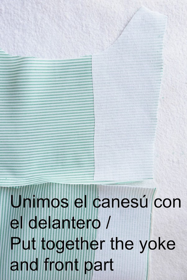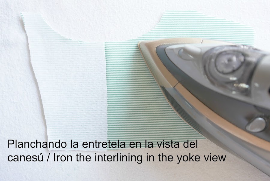 Plancharemos la entretela en las vistas delanteras del canesú y el delantero.