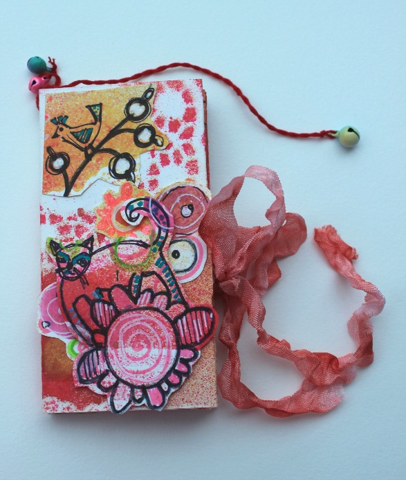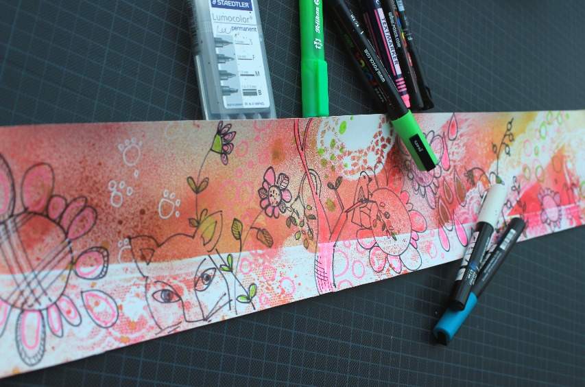 Todo depende de la historia que desees contar en tu libro, o para qué lo vas a usar, o a quién lo vas a regalar... tal vez sólo lo dejas con color y escribes sobre él... en mi caso decidí contar toda una historia pero sin palabras. Por eso he garabateado bastante y he coloreado también. (he usado: rotuladores, acrílicos y trozos de servilletas)