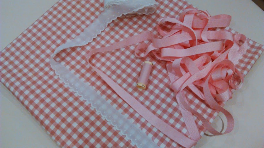 Por último, vamos a hacer un tercer mantel con la tela de cuadros rosa y blanco tipo vichy, que podéis verla y adquirir en http://m.ikea.com/es/es/catalog/products/art/10217122/.