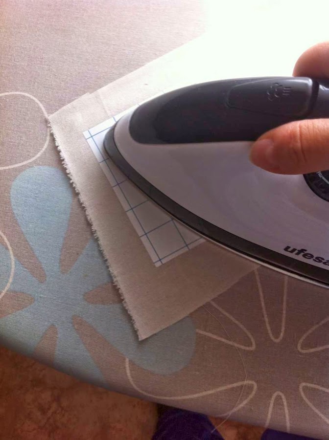 Ponemos la imagen encima de una tela, de forma que la parte impresa esté en contacto con el tejido, y planchamos. Dependiendo de lo grande que sea el motivo tendremos que insistir con la plancha más o menos tiempo, según las instrucciones de la hoja transfer: