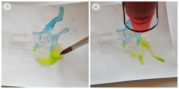 !Esta es la parte más divertida y creativa! Lo genial es que nunca vamos a conseguir el mismo resultado, así que lo importante es dejarse llevar y jugar con las tintas, el agua y la pistola de calor.