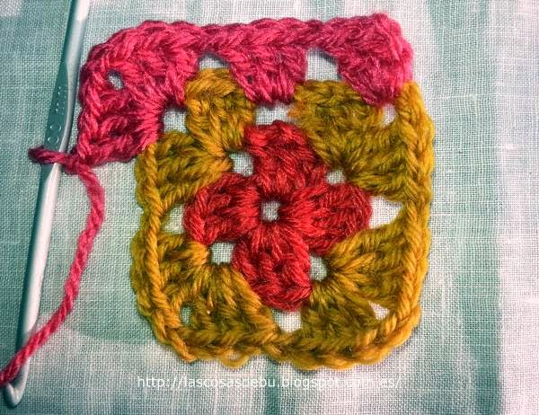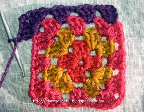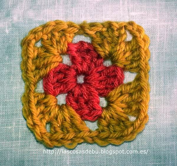 Yo he hecho los granny square de 4 colores. Las dimensiones finales son 10x10cm.
