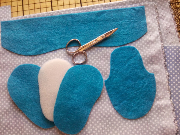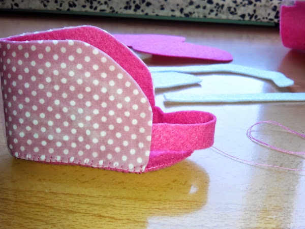 Una vez que tenemos el patrón hay que cortar cada pieza en fieltro del color que más nos guste para la suela y el lateral, y de blanco para la puntera y los bordes.