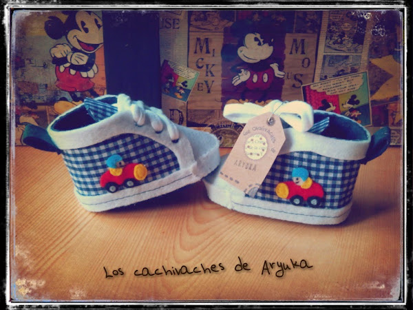 Por último, una vez decorados hay que colocarles los cordones. Podéis comprar cordones muy pequeñitos o bien hacerlos empleando trapillo. En mi caso he utilizado trapillo blanco que es más ligero y flexible, y me permite tomar las medidas exactas del cordón para cada talla.