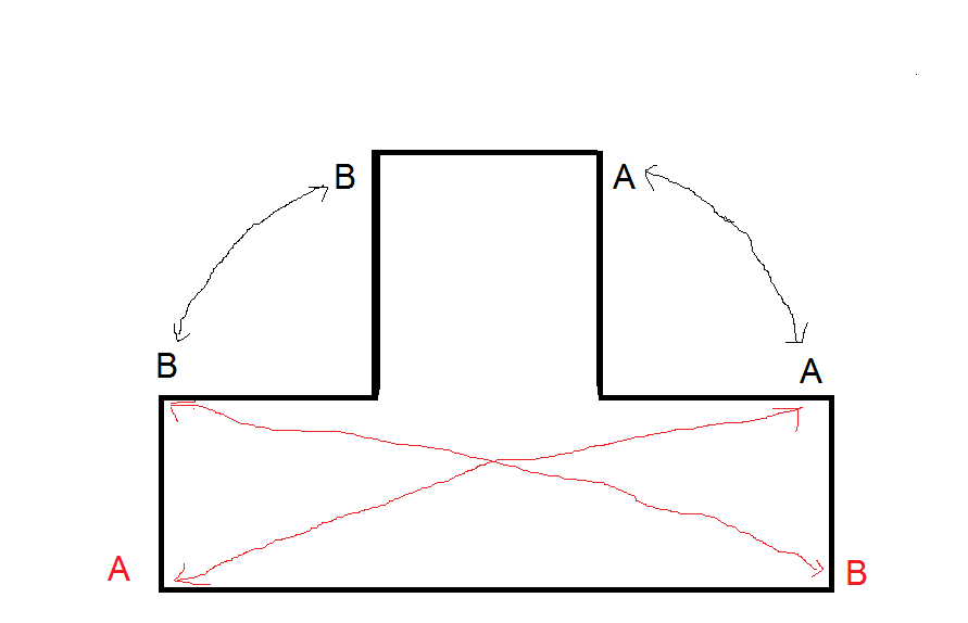 Cose primero las letras negras B con B y A con A todo a lo largo.