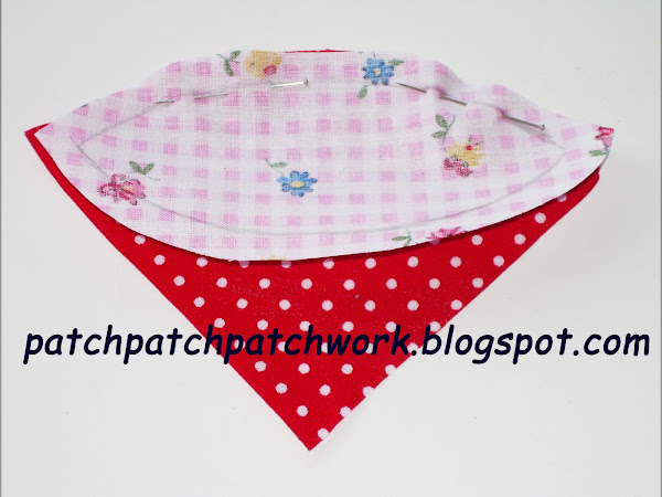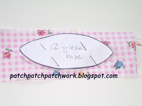 Para ello cortaréis los trozos ( 12 de un color y 24 de otro) de tela donde os quepa cada patrón. Unos 7cm. u 8cm. de largo. Cogéis los patrones y los dibujáis en el revés de la tela. El largo tiene que coincidir en ambos para que las costuras queden bien.