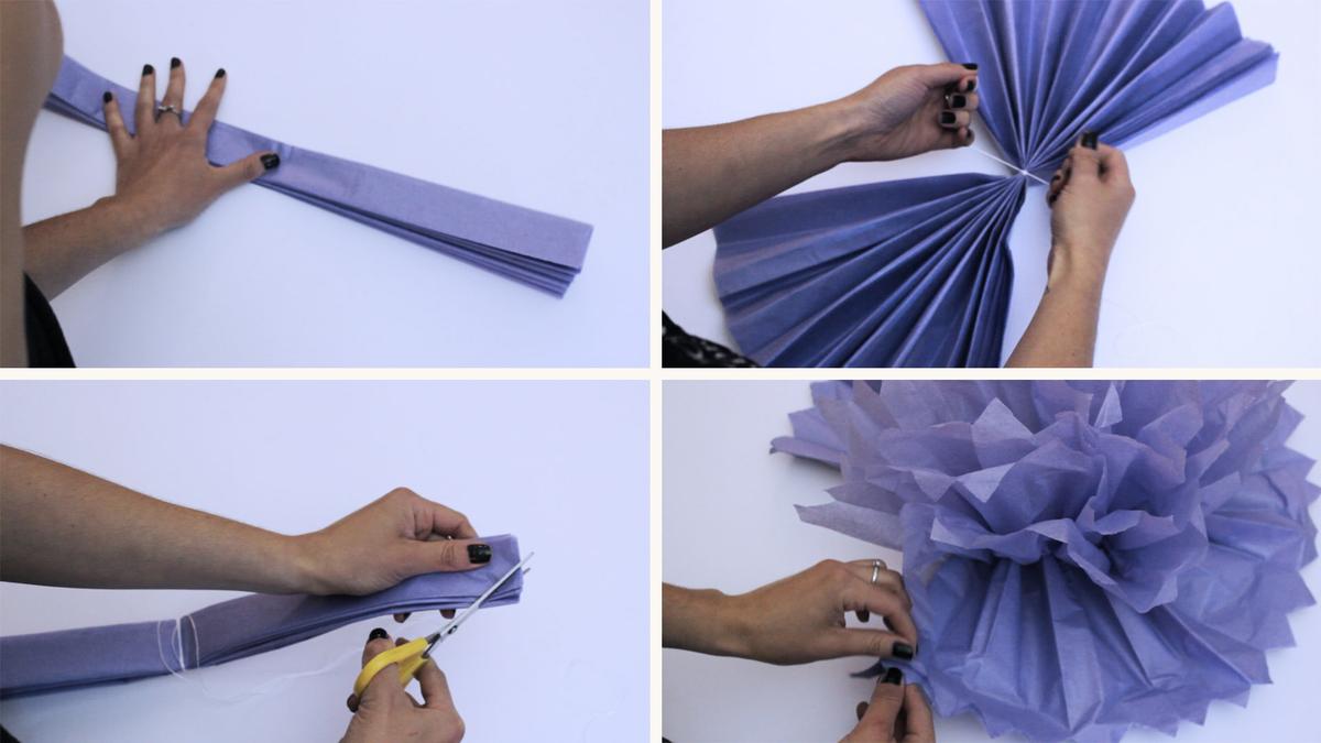 También puedes hacer tu pompón de varios colores intercalando el papel antes de doblarlo.