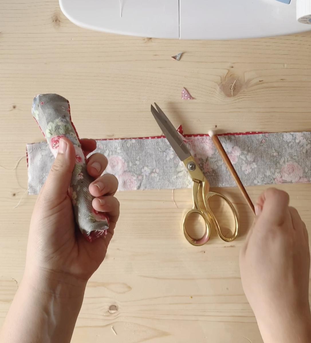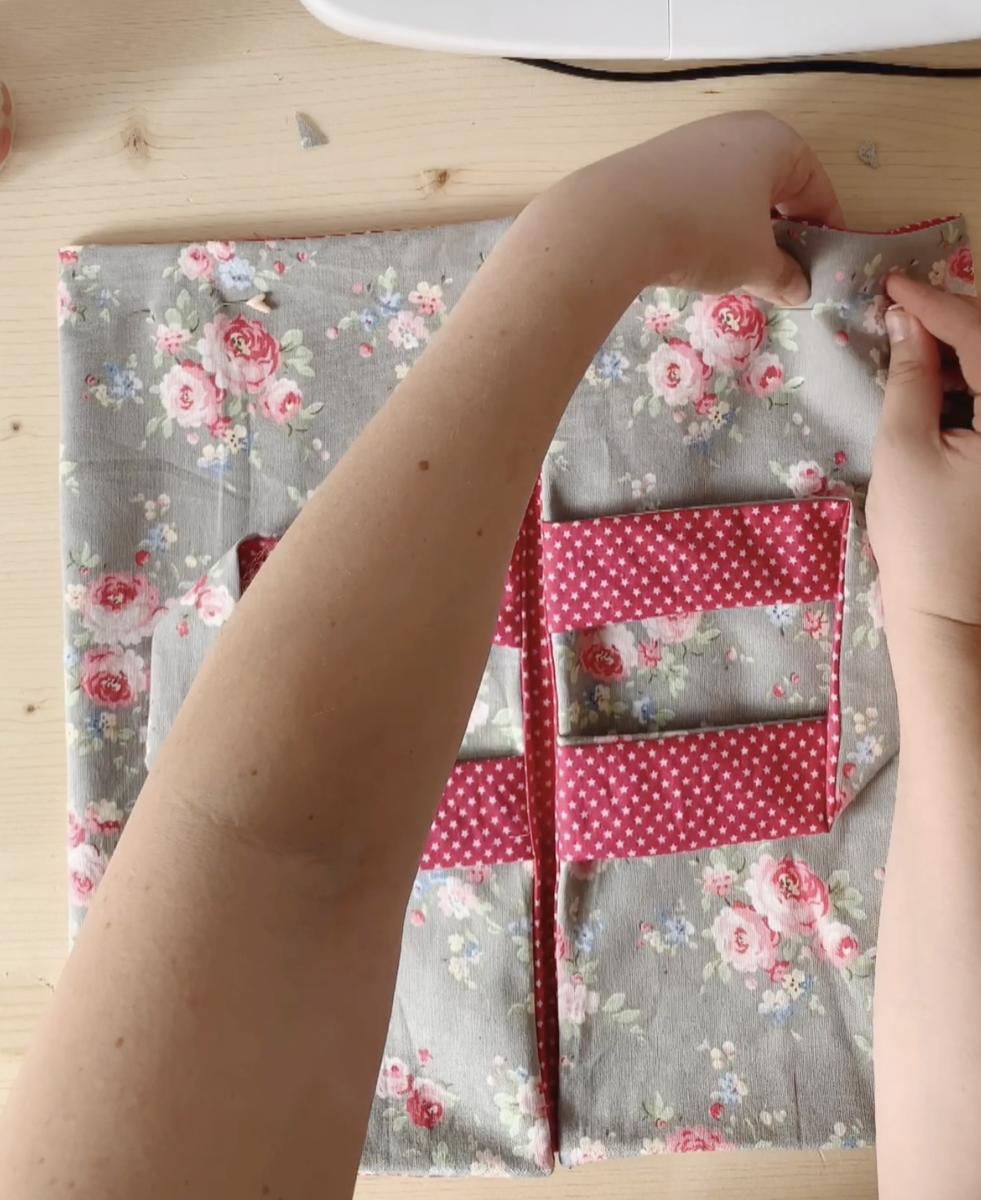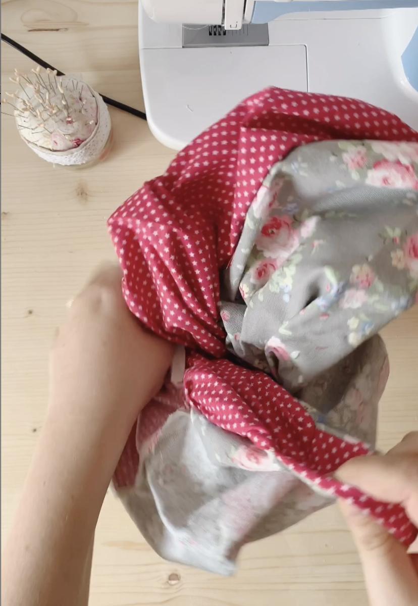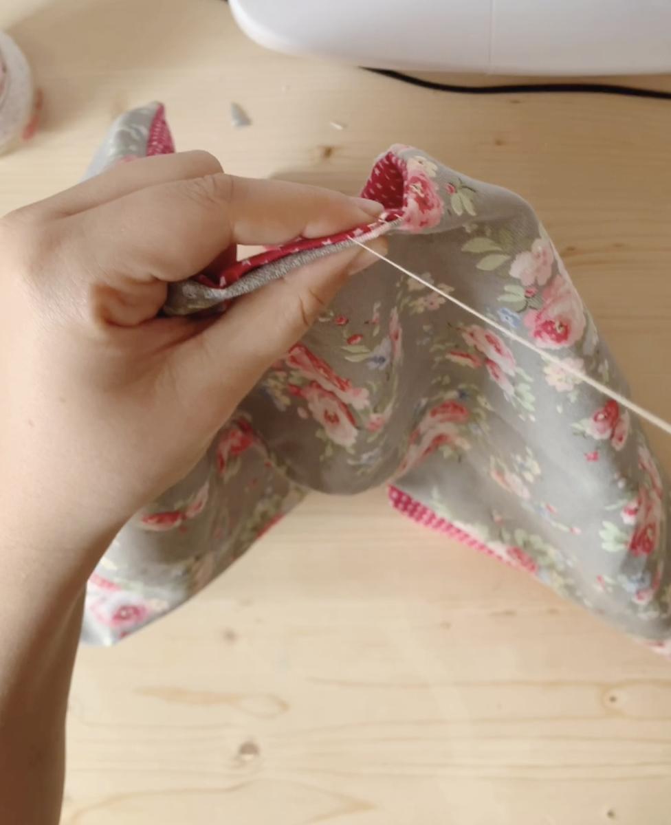 Por el agujero que hemos dejado sin coser damos la vuelta al proyecto. Planchamos y cosemos el agujero con una puntada invisible.