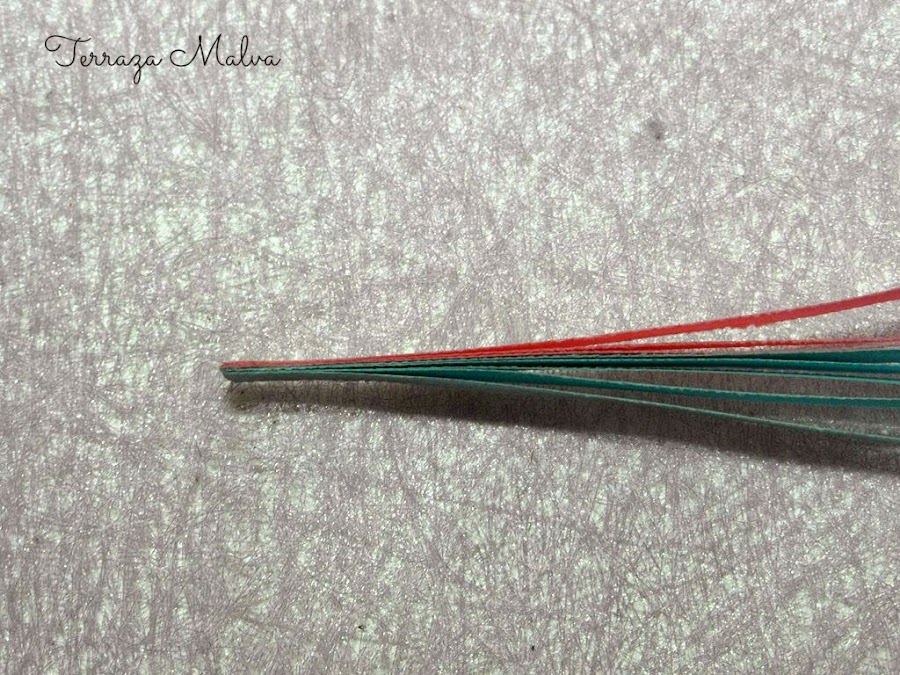Todas las tiras se han de unir mediante un poco de cola por uno de los extremos. Las tiras del mismo color han de estar todas juntas.