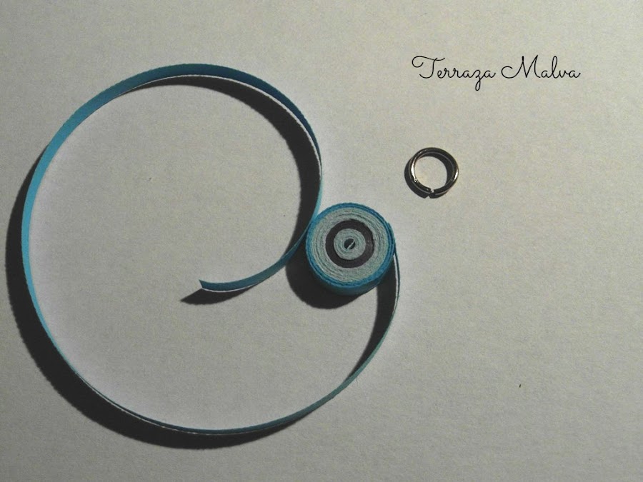 Se forma el enrollado que se quiera pero antes de finalizar se deja un trozo de papel que sujetará el anilla.