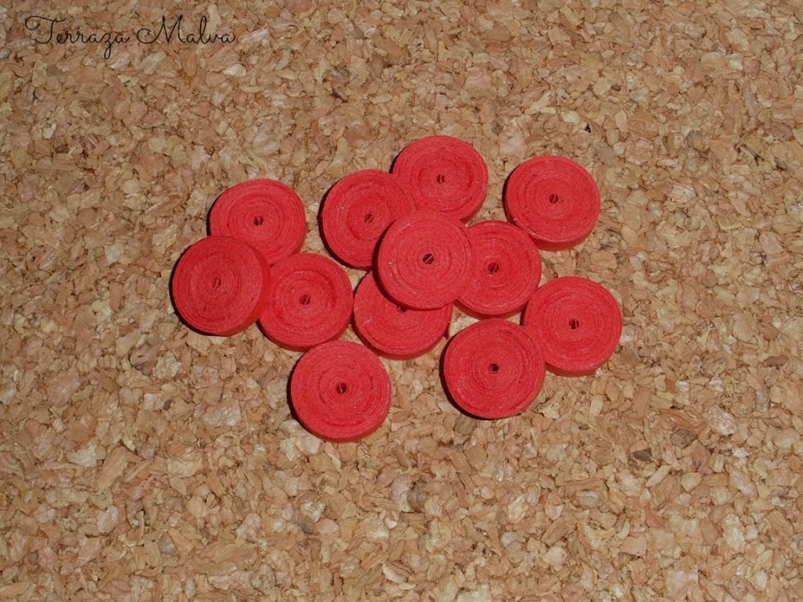 Comenzamos por hacer los enrollados apretados para los pétalos de las flores. Todos del mismo tamaño.