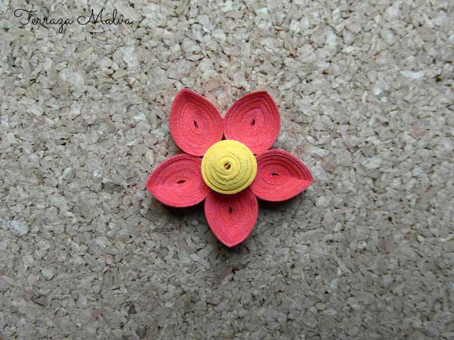 Para el cáliz de la flor se puede utilizar un enrollado apretado de otro color.