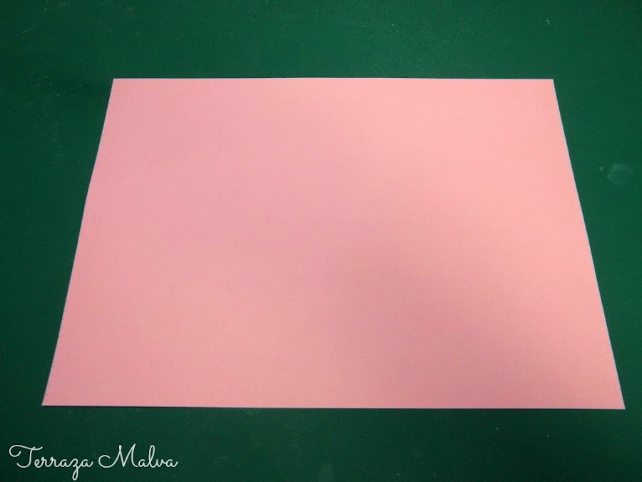 Para ello se parte de un papel al que se habrá dado forma de rectángulo si sus bordes no eran regulares. Yo en el tutorial estoy usando un papel color rosa tamaño A4 que viene en paquetes y que se usa para impresora o fotocopiadora.