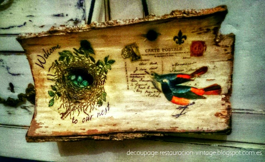 corteza de árbol con imagen transferida con medium marca mod podge.