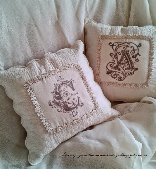 Como véis al final cada uno después de probar varias cosas se decanta por el que mejor le funciona. Yo sobre tela el que mejor me funciona y me parece más práctico y rápido es el líquido de transferencia Magic Transfer que conocí gracias a una chica de facilísimo y se lo compro a ella. Estos cojines están hechos así.