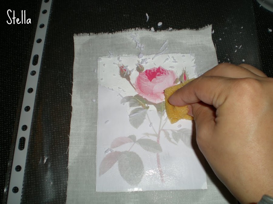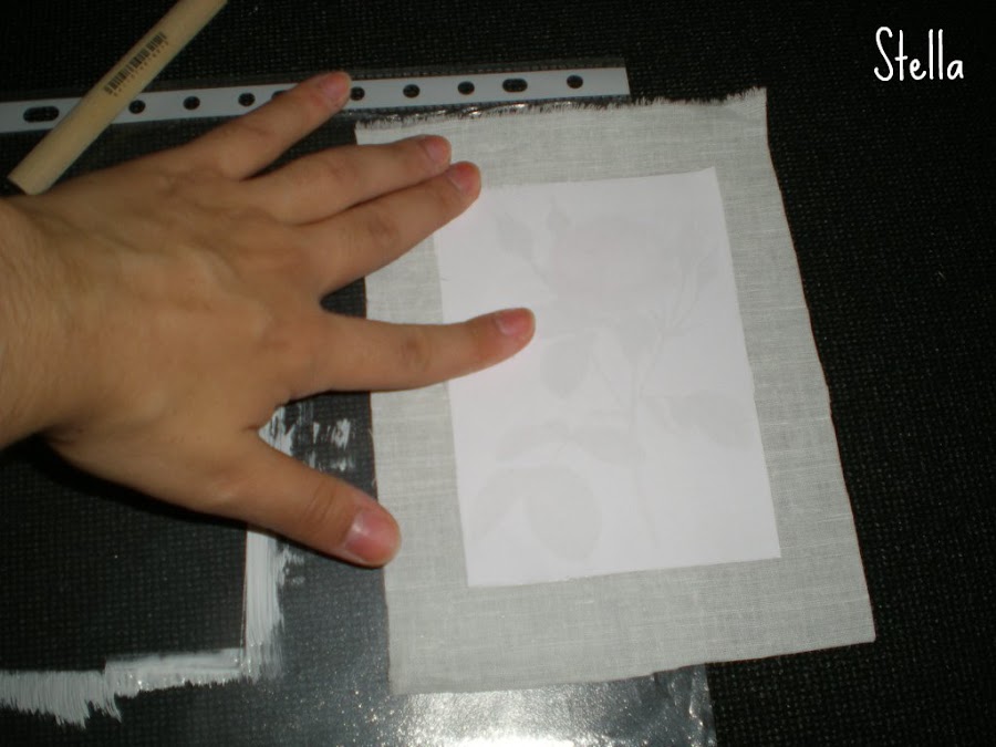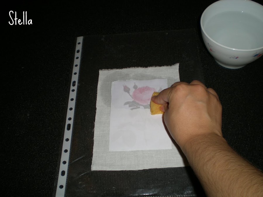3-Luego de cubrir la fotocopia con el producto,aplicarla sobre la tela...y presionar bien con la mano para que se adhiera bien a la misma...