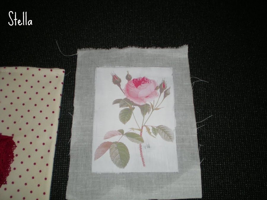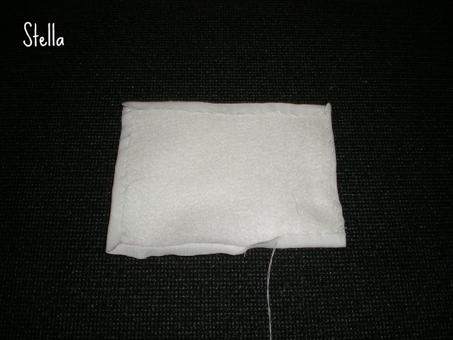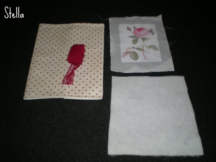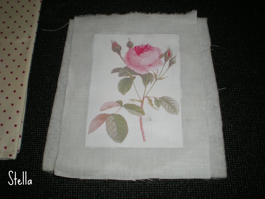 Como pueden ver,yo escogí "acolchar" el motivo con guata gruesa,porque me gustaba la idea de darle un poco de relieve,asi que la cosí a la tela el motivo,con un par de puntadas.