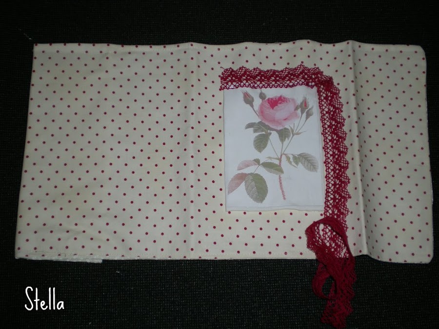 Y marcaremos la tela con la plancha...aún no lo coseremos,porque nos queda coser el recuadro con la rosa de adorno.