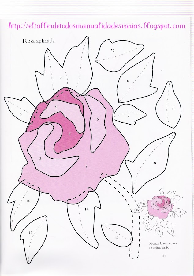 También se puede usar el patrón para pintar la rosa con pintura sobre tela.